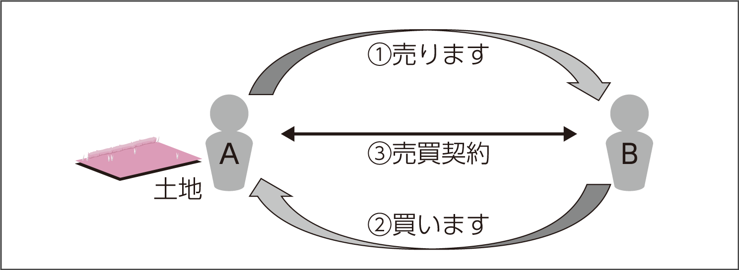 *3▶Aの「売ります」、あるいはBの「買います」のように、自分の意思を表すことを「意思表示」と呼ぶ。 |