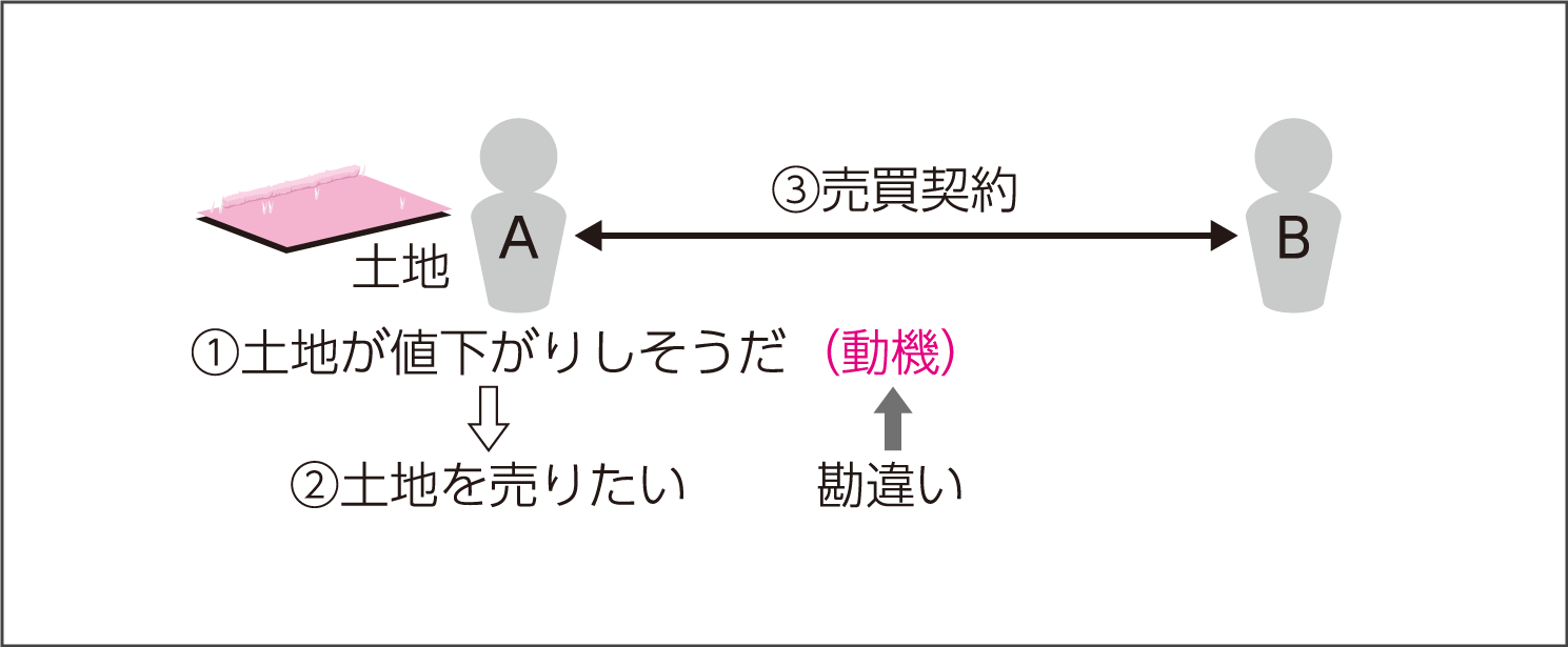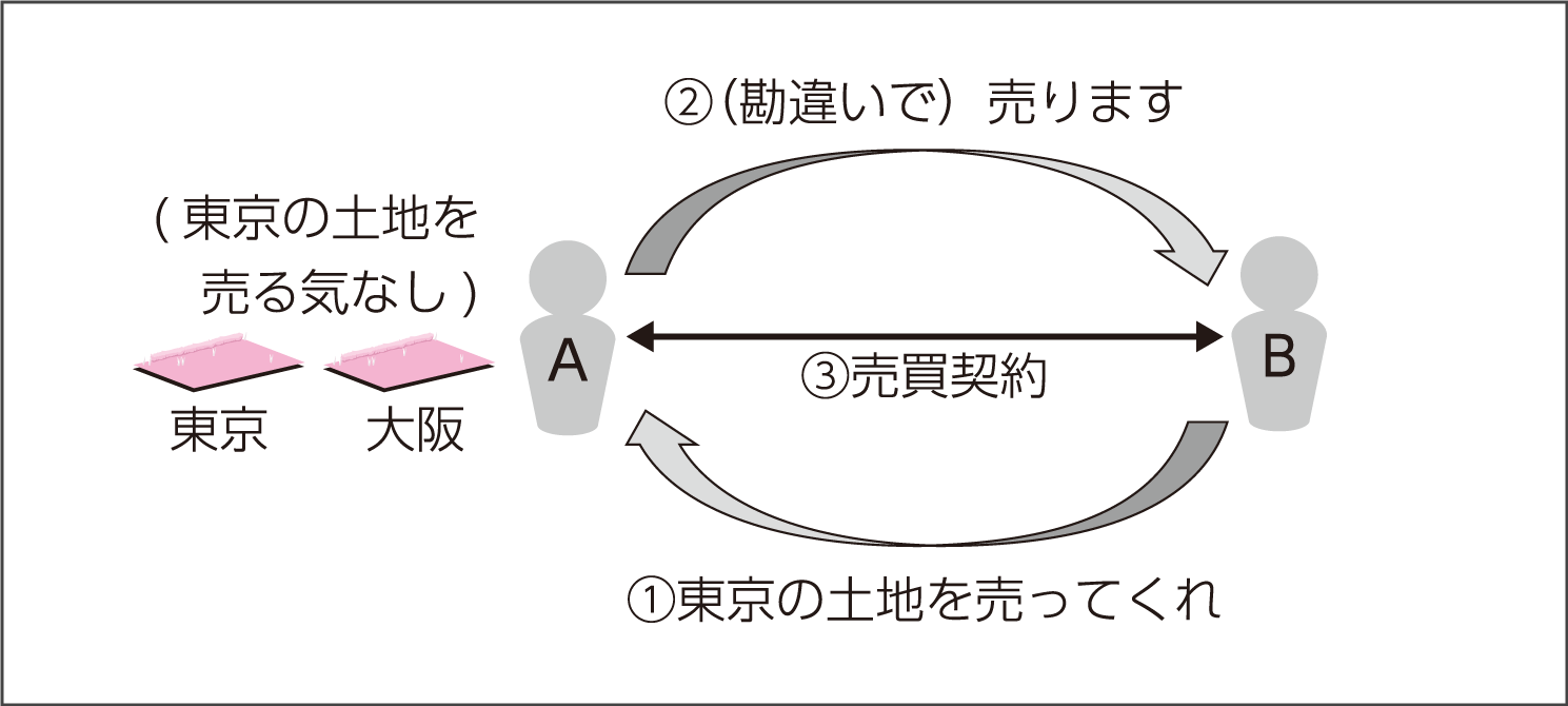 *1▶ 表意者が心の中に「土地を売りたい」という気持ちを形成しているか否かが表示の錯誤と動機の錯誤の根本的な差異である。 |